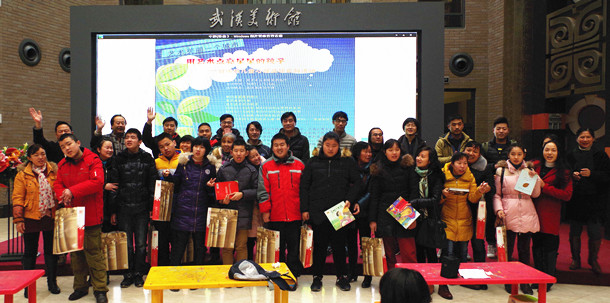 凜冽的寒風(fēng)擋不住送關(guān)懷的腳步,深冬的嚴(yán)寒冷卻不了一顆顆送溫暖的心。為響應(yīng)中共湖北省委宣傳部及省文聯(lián)的文藝惠民精神號(hào)召,2016年1月10日上午,湖北省美協(xié)組織湖北省美協(xié)藝術(shù)家足球隊(duì)的劉春冰、謝蓀、劉智平、郝孝飛、楊鵬、江超、李琪、張巍、湯軍、劉賓、趙啟龍、陳志強(qiáng)等十多位藝術(shù)家來(lái)到武漢美術(shù)館參加由湖北美術(shù)家協(xié)會(huì)和武漢美術(shù)館共同舉辦的“最美圖書送給您·關(guān)愛自閉癥兒童”對(duì)在武漢美術(shù)館注冊(cè)輔導(dǎo)的自閉癥兒童的文藝惠民贈(zèng)送活動(dòng)。