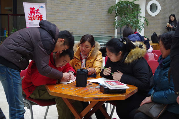 贈(zèng)送活動(dòng)結(jié)束后,湖北美協(xié)藝術(shù)家和武漢美術(shù)館的輔導(dǎo)教師給孩子們講了一節(jié)關(guān)于繪畫符號(hào)設(shè)計(jì)的課程,藝術(shù)家們積極參與進(jìn)去耐心給孩子們以輔導(dǎo)并和家長(zhǎng)進(jìn)行交流,進(jìn)一步了解孩子們的情況,希望自閉癥兒童盡早康復(fù)。剛開始,孩子們對(duì)藝術(shù)家們是有些許抵觸的,但是通過藝術(shù)家們對(duì)孩子們進(jìn)行了悉心的幫輔以及和孩子們進(jìn)行簡(jiǎn)單的互動(dòng)繪畫,使得孩子們的心靈慢慢的打開了,開始主動(dòng)提出繪畫問題并請(qǐng)藝術(shù)家攜手共畫作品,加深了互相之間的交流,藝術(shù)家們也頗有感觸。對(duì)于自閉癥兒童的美術(shù)輔導(dǎo)培訓(xùn),可以讓這些自閉癥兒童能直觀的認(rèn)識(shí)和體驗(yàn)藝術(shù)的樂趣與多樣性,培養(yǎng)孩子們對(duì)藝術(shù)的愛好和興趣,從而改善他們的病情,此次活動(dòng)體現(xiàn)了社會(huì)對(duì)自閉癥兒童的關(guān)愛與呵護(hù)。