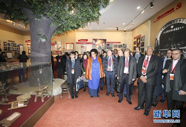 2017年12月1日,來華出席中國共產黨與世界政黨高層對話會的部分外國政黨領導人在中央黨校參觀。新華社記者 丁林 攝