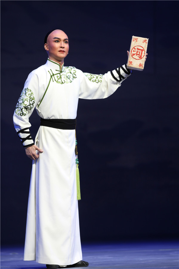 余維剛本次競演的劇目《萬里茶道》以十九世紀從漢口茶港到沙俄恰克圖的一條橫亙亞歐古商道為背景,演繹清代漢商與晉商共創“大河興”商號的艱辛歷程,在過黃河、走太行、越沙漠的萬里茶道上,既有茶商兒女的感情糾葛,也有運茶人艱辛跋涉,更有世代堅守“離苦得樂在尋時”的探索初心。該劇自2015年立上舞臺以來已在萬里茶道沿途多個城市成功巡演,并且經過主創團隊幾番修改打磨,舞臺呈現更加臻熟,尤其余維剛飾演的“葉天韜”唱念做舞受到專家和觀眾好評。