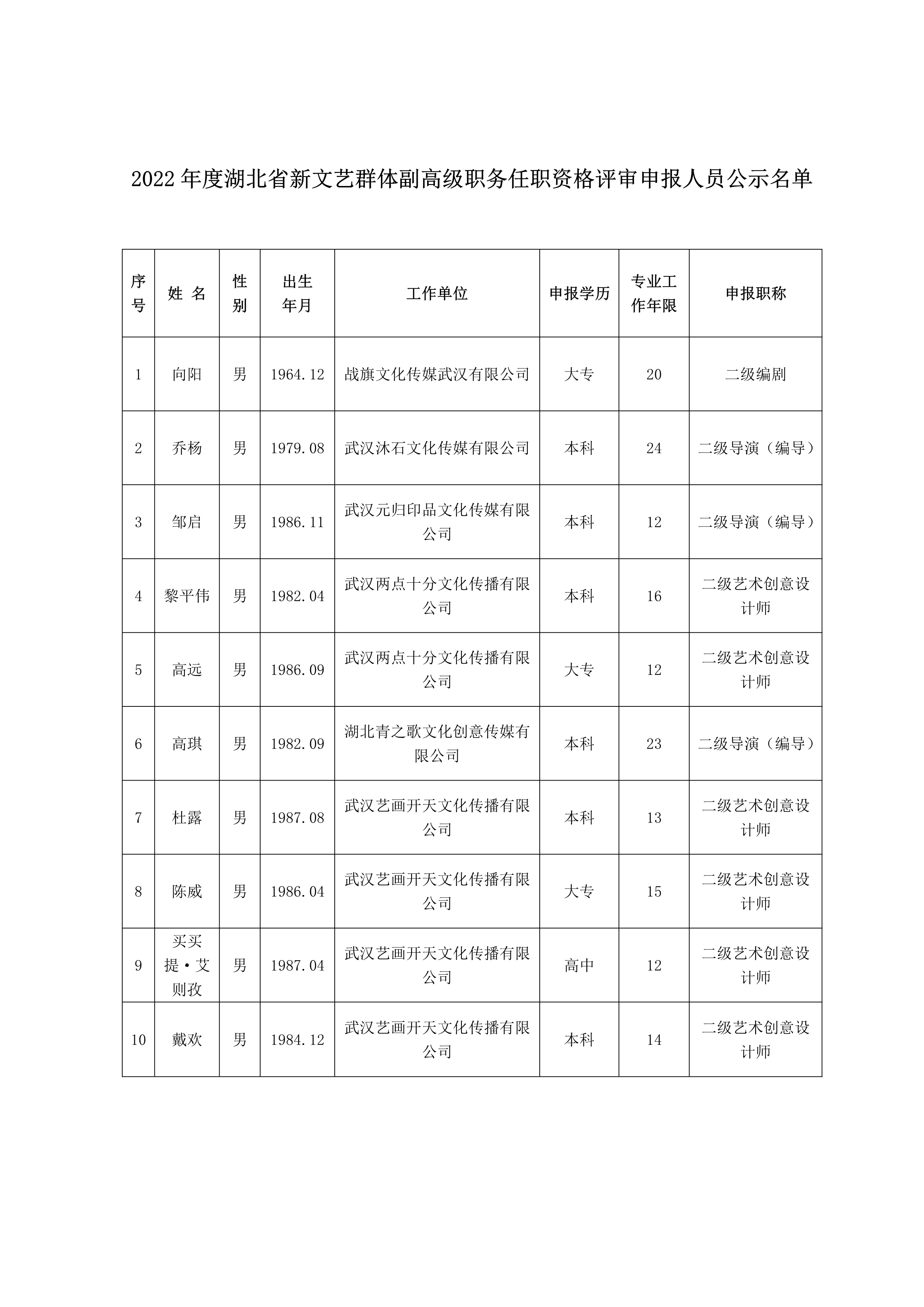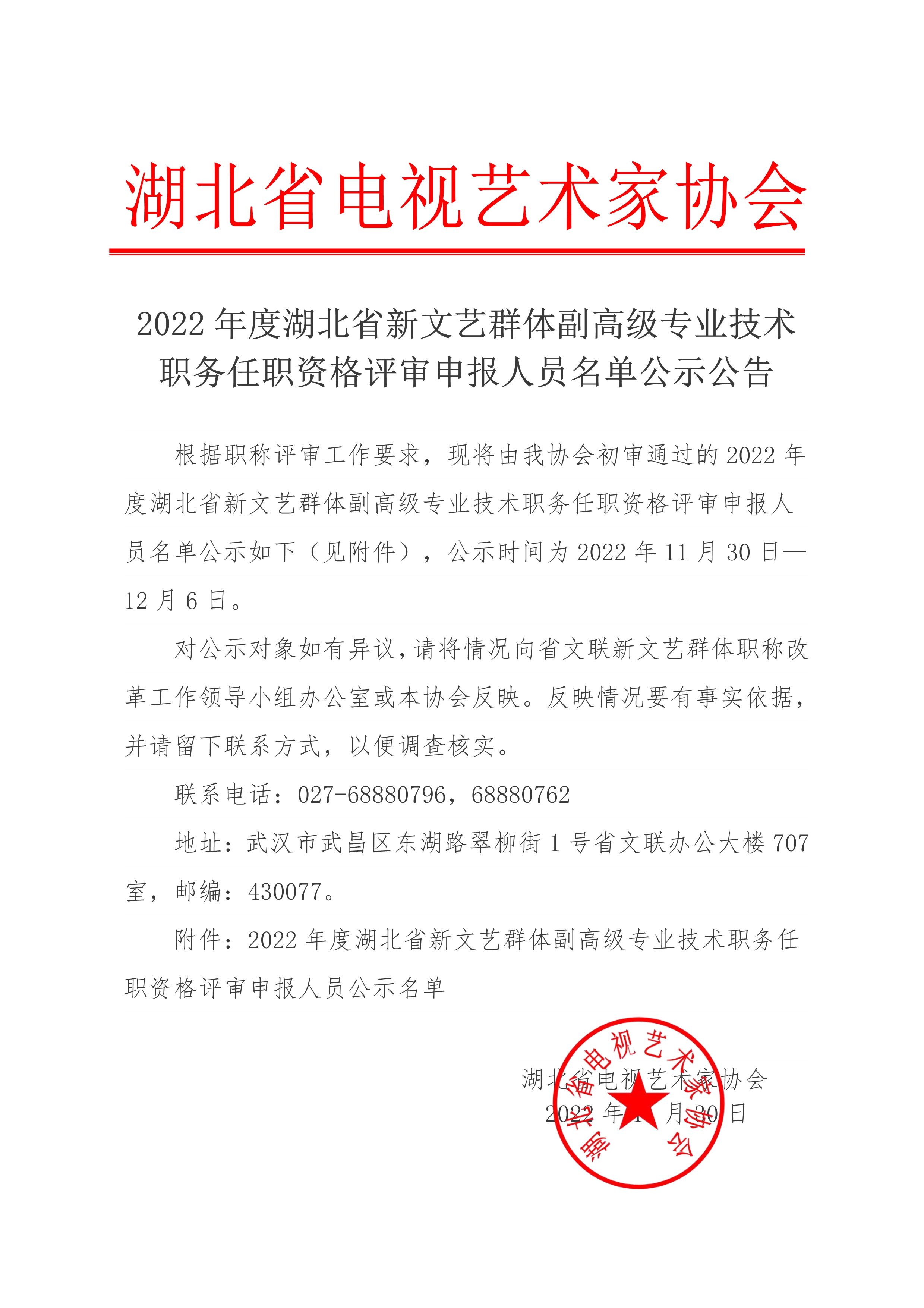 附件下載:2022年度湖北省新文藝群體副高級專業技術職務任職資格評審申報人員公示名單.jpg