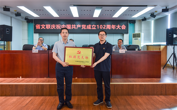 省文聯(lián)黨組書記、常務(wù)副主席張士軍頒發(fā)“紅旗黨支部”獎牌