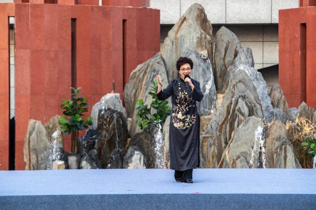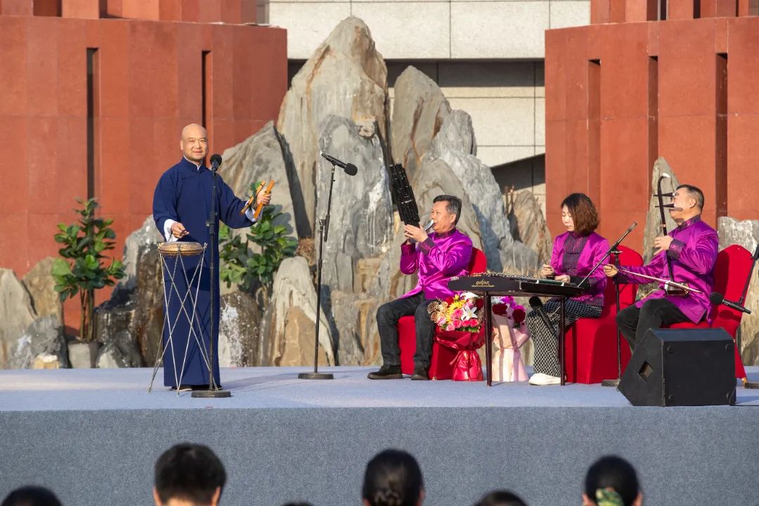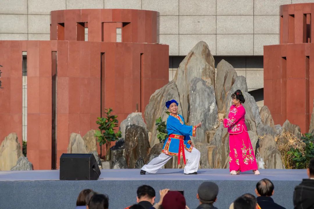 共飲蘄河水,同唱黃梅調。黃岡作為黃梅戲的發源地和著名的戲曲之鄉,孕育出了不少優秀作品和著名戲劇演員,黃梅戲已經成為黃岡不可或缺的文化名片之一。由蘄春黃梅戲藝術推廣中心帶來的節目黃梅戲串燒《梅韻飄香滿蘄陽》,原汁原味的地道唱腔,讓不少蘄春當地的百姓自豪地舉起了大拇指。隨后,由湖北省文聯主席、湖北省文藝志愿者協會主席、中國戲劇梅花獎獲得者楊俊帶來經典曲目《女駙馬》,接著邀請蘄春黃梅戲協會會長張來生一起演繹的《樹上的鳥兒成雙對》更是讓觀眾們仿若身處戲樓,令人拍案叫絕,不少票友更是激動地吶喊:“楊老師再來一個!太好聽了!”場面熱鬧非凡。