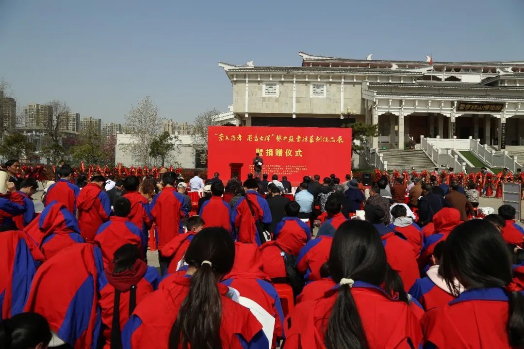 3月20日,春分時節,云夢縣博物館內,鮮花如云,高朋滿座。“崇文尚孝 墨香古澤”樊中岳書法篆刻作品展暨捐贈儀式如期舉行。西泠印社、湖北省文史館、湖北省書協、書法報社、湖北省書法院等單位,李剛田、孫慰祖、孟慶星等名家以及樊中岳身處各地甚至遠在西藏的學生紛紛寄來賀信、賀作。