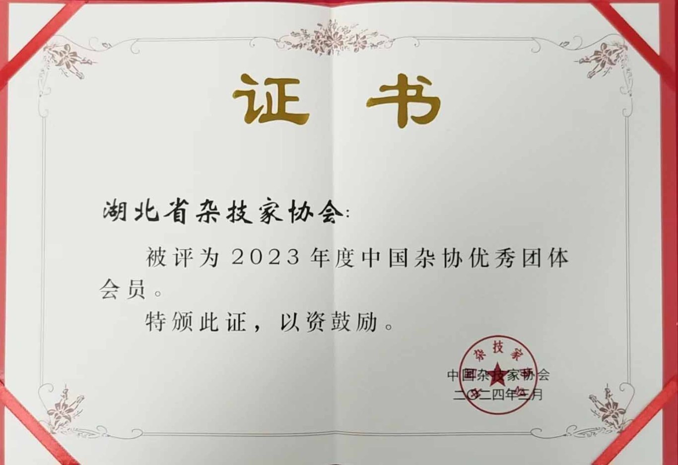 會上,湖北省雜技家協(xié)會獲得“2023年度中國雜協(xié)優(yōu)秀團(tuán)體會員”稱號;武漢雜技藝術(shù)有限責(zé)任公司、黃岡市雜技團(tuán)因工作成績突出均獲表彰。