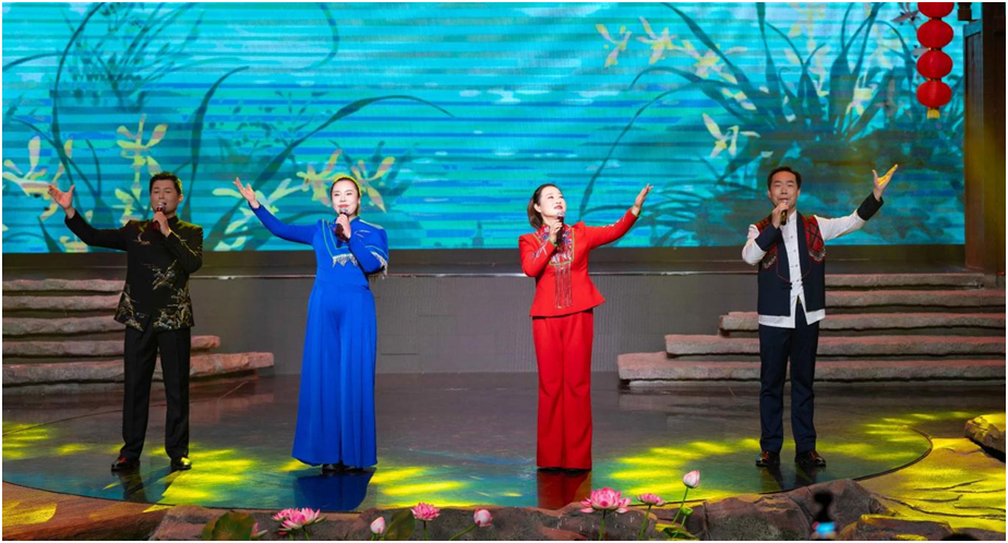 三峽演藝集團青年歌手熊子瑤演唱的《小河淌水》,空靈澄澈,如潺潺流水唱進了觀眾心里。