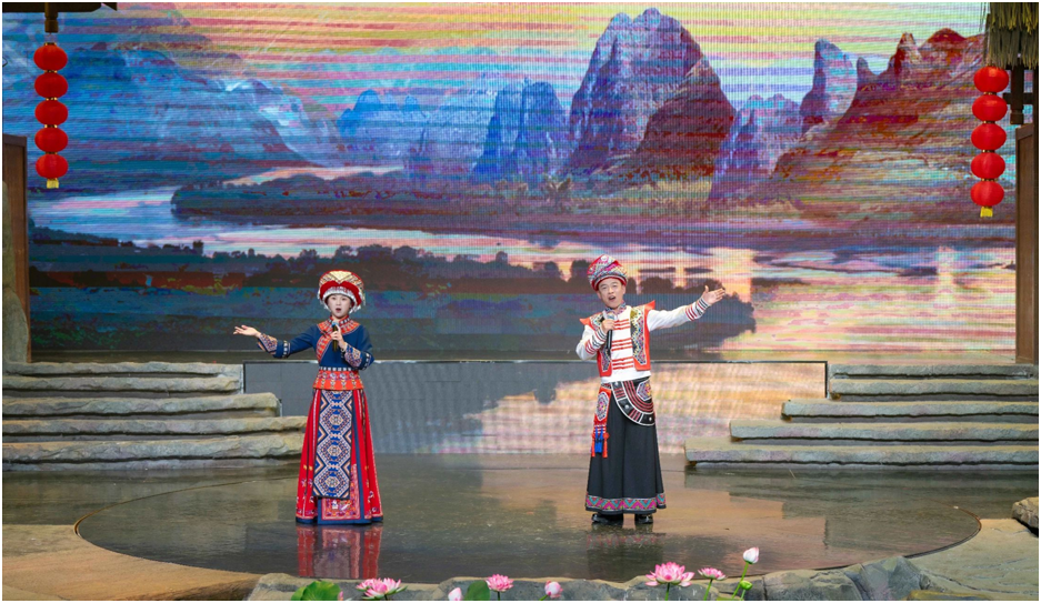 山歌女神覃誠芳攜手《幺妹住在十三寨》《土家幺妹把你留》的詞作者丁曉宏,傾情演唱這兩首土家特色歌謠,讓觀眾沉醉在山水間,歌聲里。本場演出也在觀眾的不舍和眷戀中落下帷幕。