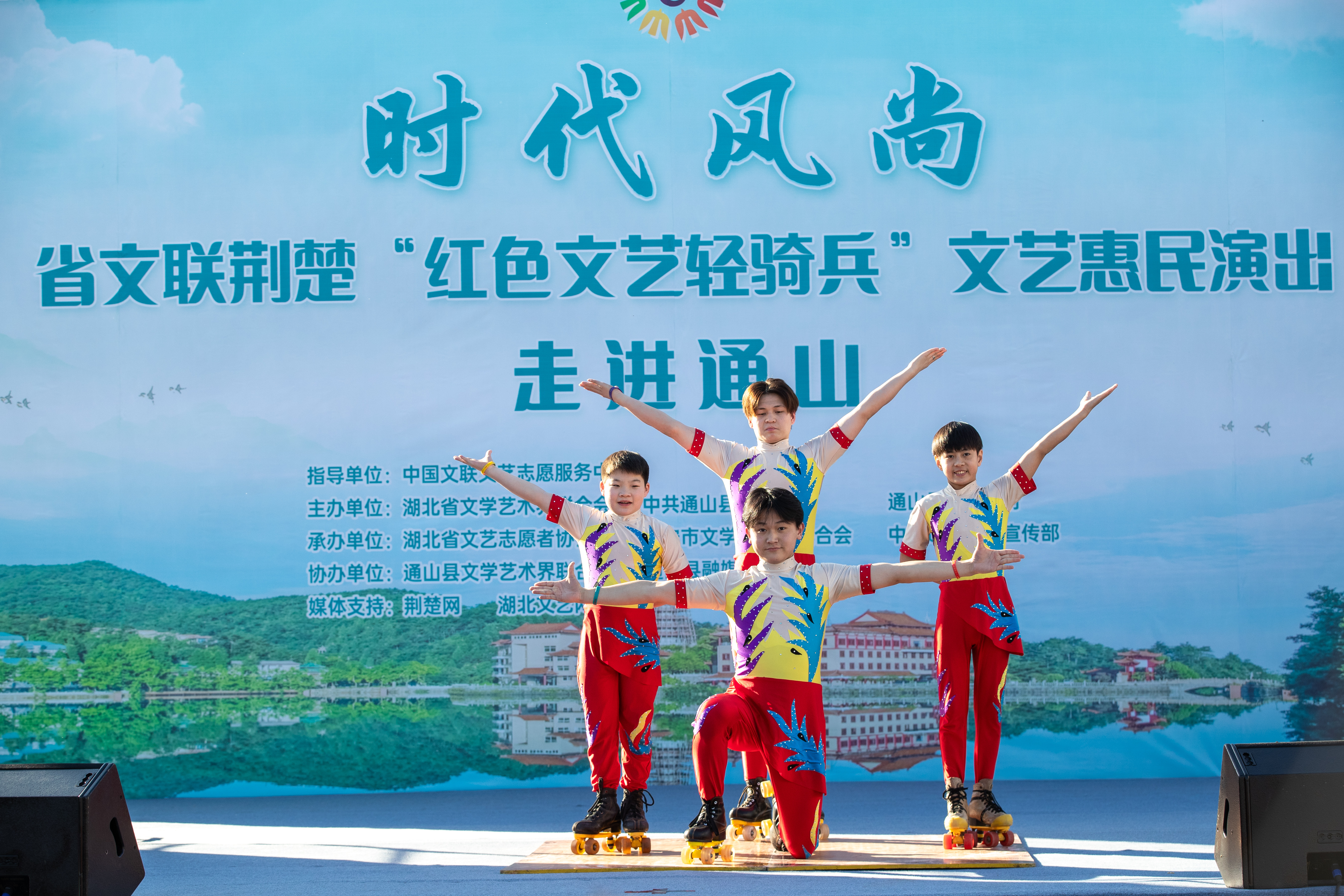 整場演出以開場歌舞《中國范》拉開序幕。這首歌曲以其激昂的旋律和動感的舞姿,迅速點燃了現場的氣氛。四位湖北省優秀文藝志愿者的演唱激情四溢,街舞通山TOP團隊的加入更是讓現場氣氛達到了高潮。他們的表演不僅展現了新時代青少年的活力和風采,也傳遞了積極向上的正能量。