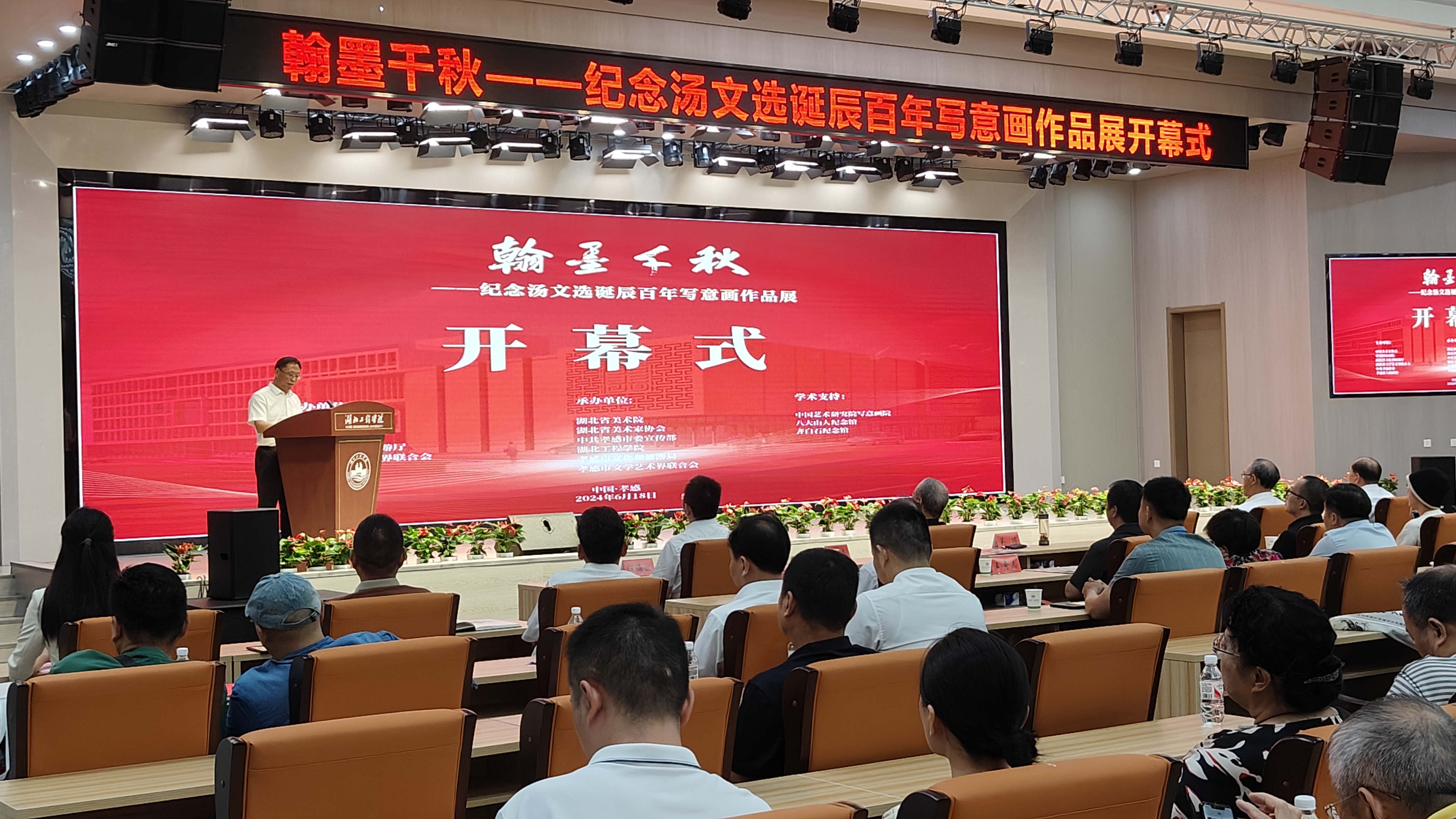 2024年6月18日,“翰墨千秋——紀念湯文選誕辰百年寫意畫作品展”在湖北工程學院湯文選美術館開幕,省文聯副主席王永平出席展覽并致辭。攝影:張翠蘋
