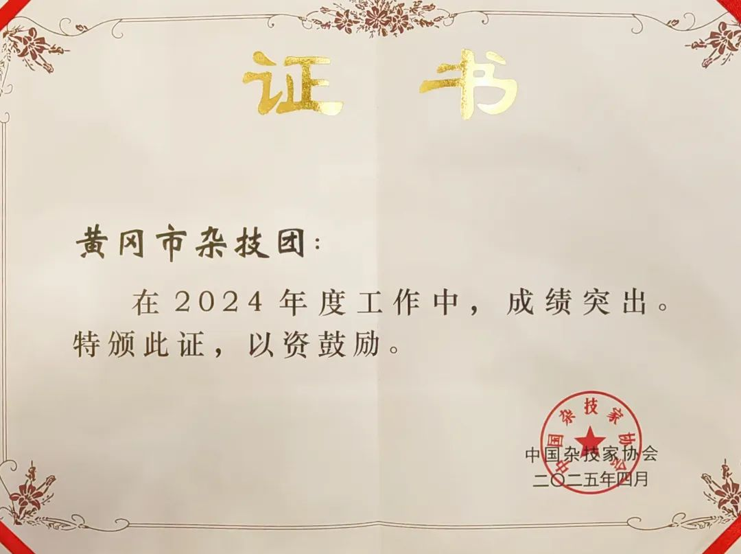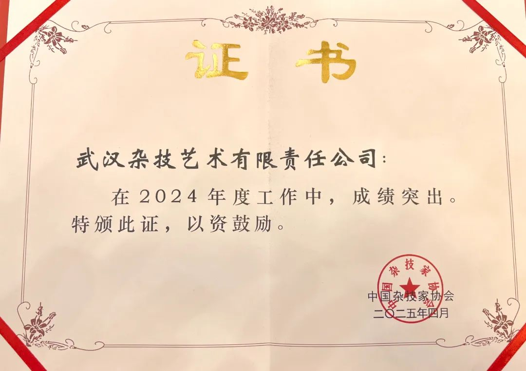會上,通報了中國雜協2024年度工作成績突出的團體會員單位和雜技院團等。武漢雜技藝術有限責任公司、黃岡市雜技團因2024年工作成績突出獲得先進單位表彰。