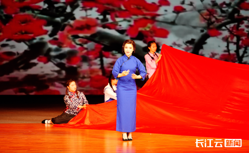 大別山精神、抗洪精神、抗疫精神,是荊楚兒女用熱血和汗水鑄就的精神豐碑。展演在氣勢恢宏的開場舞《鮮花獻給黨》中拉開序幕,舞者們以剛勁有力的動作,展現出“三大精神”引領下中華民族奮勇向前的磅礴力量。歌曲《為了誰》重現了抗洪斗爭中人民子弟兵沖鋒在前、舍生忘死的英勇場景,臺下觀眾輕聲跟唱,不少人眼中泛起淚光。詩朗誦《致敬!最美逆行者》將現場氛圍推向高潮,表演者們用鏗鏘有力又飽含深情的聲音,再現了廣大醫務工作者和全國人民眾志成城、守望相助,構筑起疫情防控堅固防線的動人畫面。