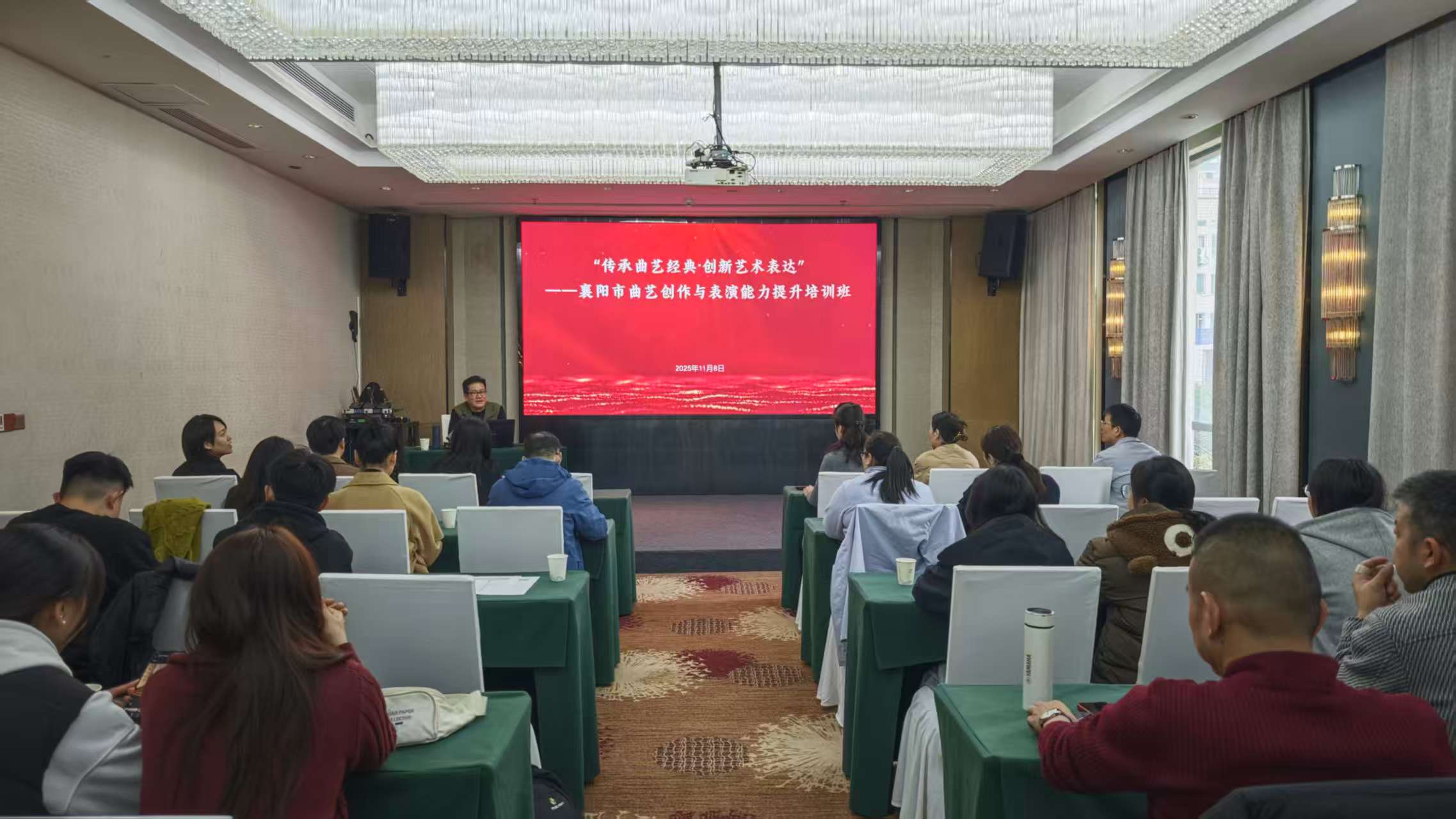 11月8日,由襄陽(yáng)市文聯(lián)指導(dǎo)、襄陽(yáng)市曲藝家協(xié)會(huì)主辦的“傳承曲藝經(jīng)典·創(chuàng)新藝術(shù)表達(dá)”——襄陽(yáng)市曲藝創(chuàng)作與表演能力提升培訓(xùn)班舉行。湖北省曲藝家協(xié)會(huì)副主席、副研究館員李四順,湖北省曲藝家協(xié)會(huì)理事、二級(jí)演員劉智鵬受邀前來(lái)授課,全市40余名曲藝從業(yè)者及愛(ài)好者參加培訓(xùn)。