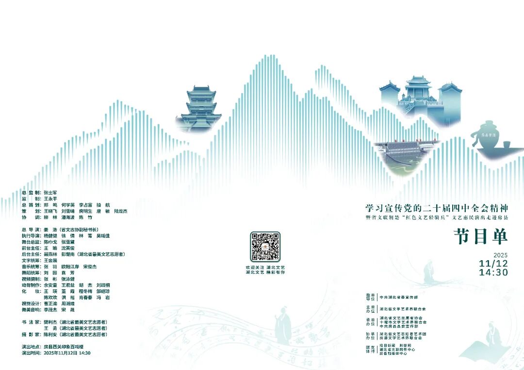 在全省深入學習宣傳貫徹黨的二十屆四中全會精神之際,11月11日至12日,省文聯組織文藝名家和文藝志愿者深入十堰市房縣舉辦學習宣傳黨的二十屆四中全會精神暨荊楚“紅色文藝輕騎兵”惠民演出、文藝宣講、培訓輔導等活動。