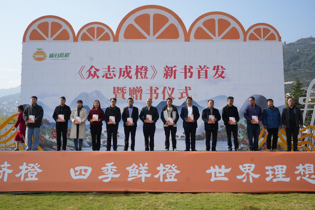 11月15日上午,宜昌作家羊角巖紀實文學作品《眾志成橙——湖北秭歸臍橙12個億元村紀實》新書首發式在“屈原故里”秭歸縣水田壩鄉橙谷·壩上公園舉行。活動由秭歸縣柑橘協會主辦,縣委、縣政府、縣農業農村局及縣直相關單位負責同志、臍橙產業重點鄉鎮代表、來自全縣12個臍橙“億元村”的數百名群眾,以及省內外柑橘專家、全國客商和國外農業考察團代表歡聚一堂,共同見證這一記錄秭歸臍橙產業發展與鄉村振興實踐的重要成果面世。