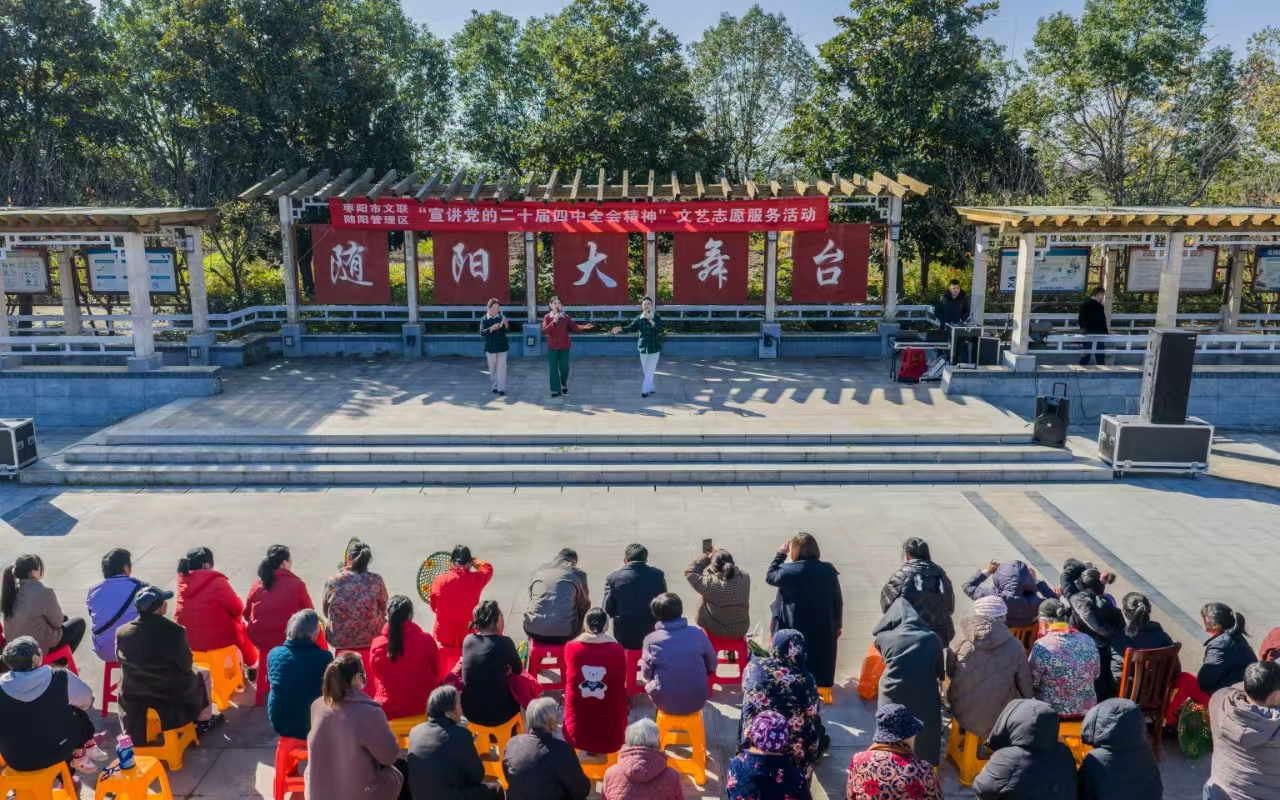 為學(xué)習(xí)好、宣傳好、貫徹好黨的二十屆四中全會精神,11月18日至19日,棗陽市文聯(lián)組織市舞蹈家協(xié)會、市作家協(xié)會、市攝影家協(xié)會共計(jì)50余名文藝志愿者走進(jìn)吳店鎮(zhèn)徐樓村、隨陽管理區(qū)等基層一線,開展“宣講黨的二十屆四中全會精神”文藝志愿服活動,受到當(dāng)?shù)乩习傩諢崃覛g迎。
