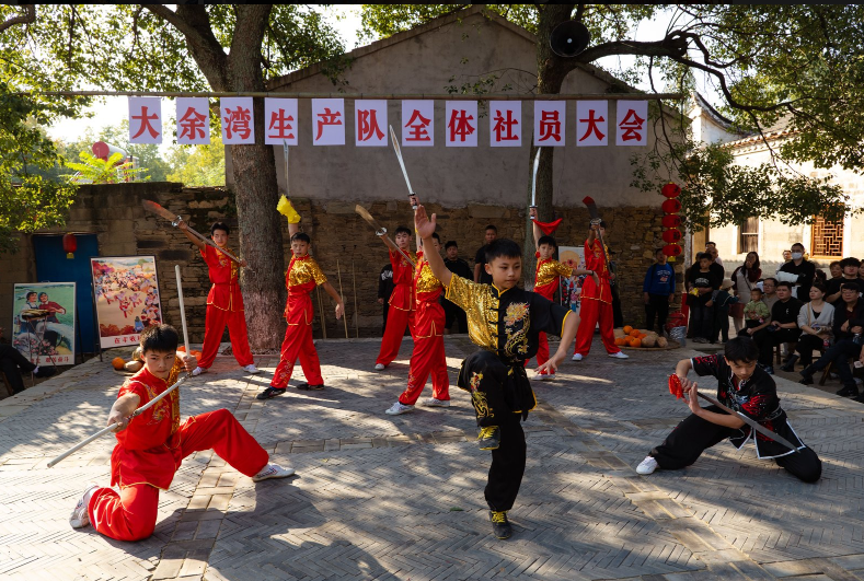 調(diào)研當(dāng)日,鄉(xiāng)村場(chǎng)院與街巷間,鑼鼓喧天,喝彩不斷。大余灣對(duì)民俗非遺的保護(hù),絕非束之高閣,而是將其融入日常,實(shí)現(xiàn)了有效的“活化”傳承。泥塑藝術(shù)家現(xiàn)場(chǎng)獻(xiàn)藝,將指尖泥土化為栩栩佳作;皮影戲幕布后的光影變幻,木偶戲藝人的巧手操控,引得孩子們陣陣驚呼;驚險(xiǎn)刺激的非遺斗雞表演和剛?cè)岵?jì)的木蘭武術(shù)展示,展現(xiàn)了力量與技巧之美;韻味十足的楚劇、妙趣橫生的湖北大鼓、神奇的川劇變臉,以及富有節(jié)日喜慶氛圍的采蓮船等民俗表演,輪番上場(chǎng),為參觀者奉上了一場(chǎng)場(chǎng)傳統(tǒng)文化的盛宴。